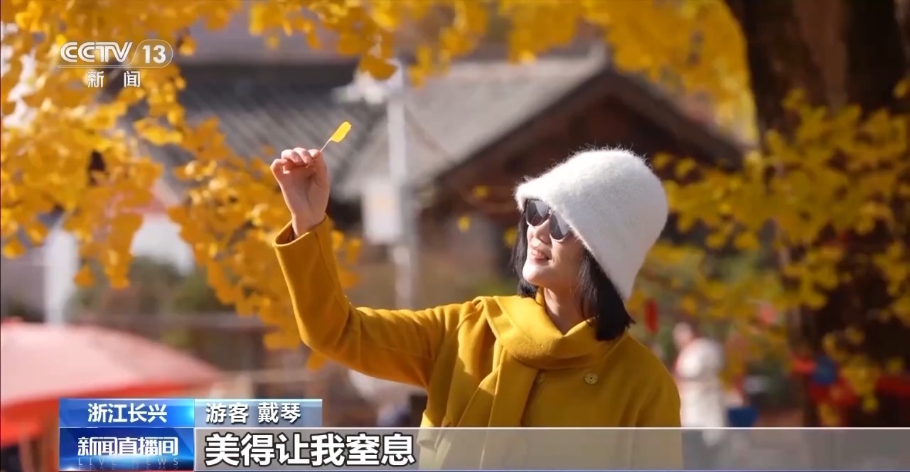 总台记者 濮嘉怡:1500岁的“银杏皇后”现在正值最美。在这里,每一次射击都是巨大的成功。上周末有超过10万名游客到访这里。