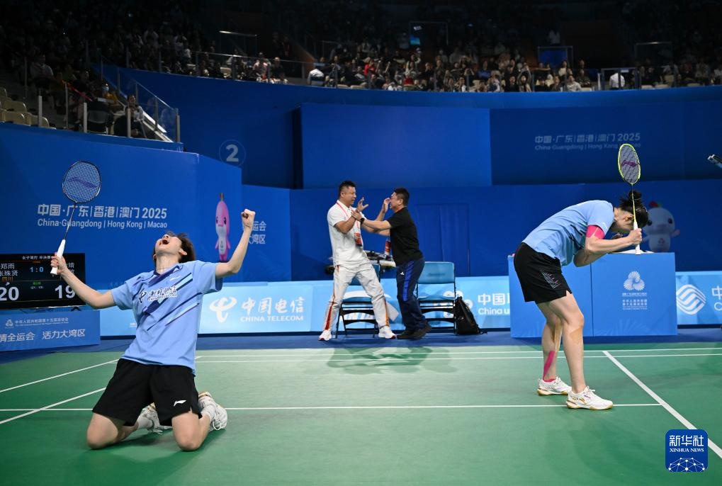 11月18日,四川队郑宇/张淑贤(左)庆祝比赛胜利。当日,在深圳举行的第十五届全国锦标赛女子羽毛球双打半决赛中,四川队的郑宇/张淑贤以2-0击败广东队的李怡静/罗秀敏,晋级决赛。 11月18日,新华社记者李志恒拍摄的四川队双人组合郑宇(左)和张淑娴在比赛中。当日,在深圳举行的第十五届全国羽毛球锦标赛女子双打半决赛中,四川队郑宇/张淑娴以2-0战胜广东队李怡静/罗秀敏,晋级决赛。新华社 李智恒 供图 11月18日,四川队郑宇/张淑贤(左)庆祝比赛胜利。当日,第十五届全国羽毛球锦标赛女子双打半决赛在深圳举行,郑宇/张淑贤组合四川队以2-0战胜广东队的李怡静/罗秀敏,晋级决赛。新华社记者 李志恒 供图