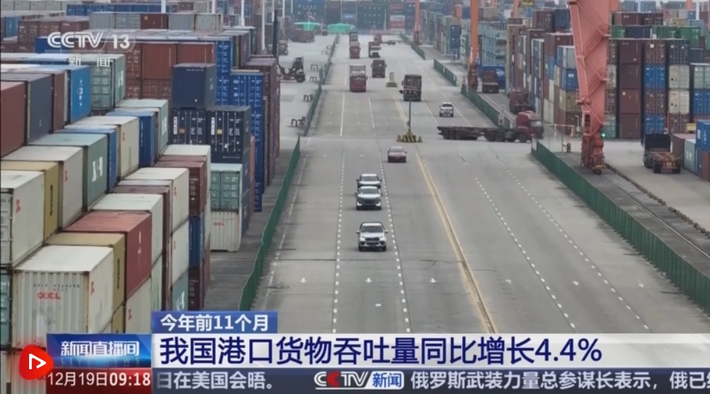 今年以来,我国港口运行平稳。前11个月,货物吞吐量保持快速增长,同比增长4.4%。外贸航线网络不断扩大,出口产品交叉结构不断完善,为我国外贸高质量发展注入强劲动力。